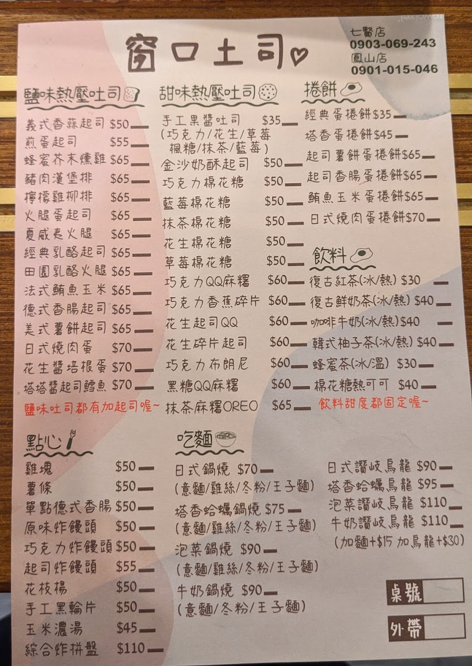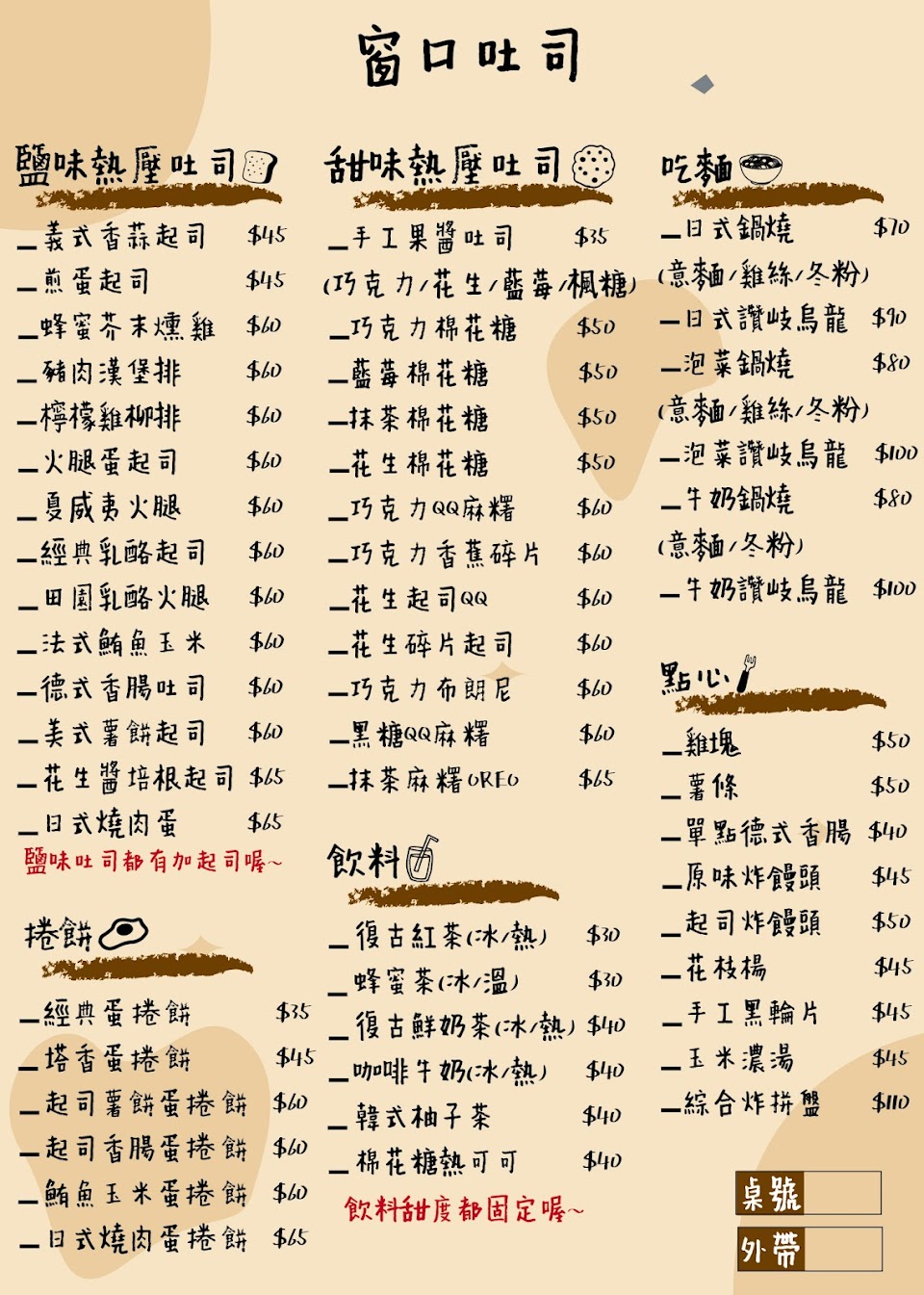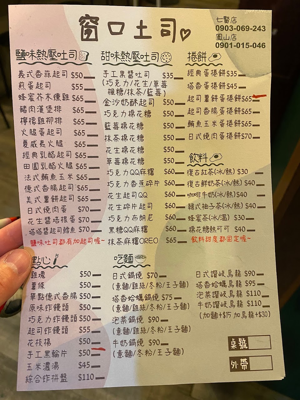 2024最新在地推薦餐廳的菜單_窗口土司鳳山店的菜單、圖片