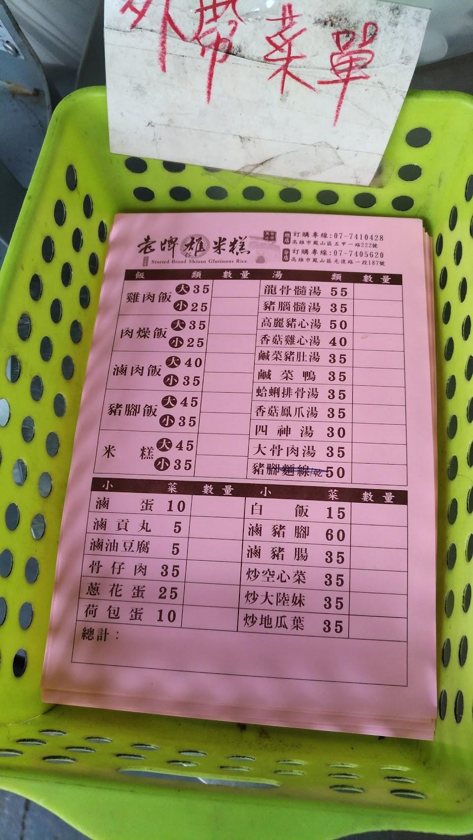 有米糕,燉湯有豬腦、香菇雞腳。