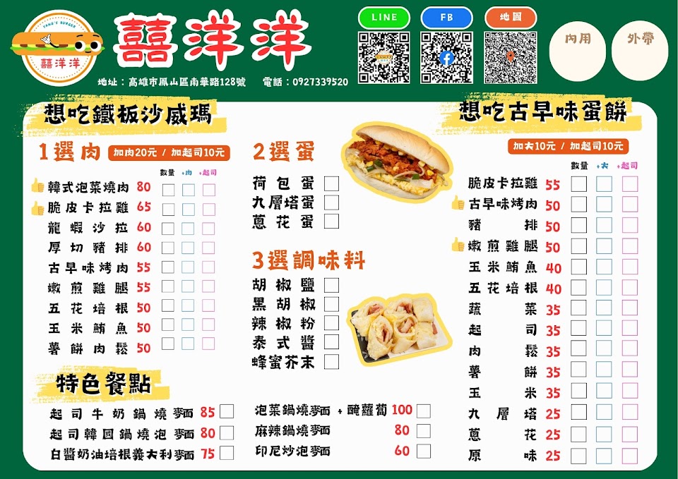 2024最新在地推薦餐廳的菜單_囍洋洋鐵板沙威瑪(早午餐/宵夜)的菜單、圖片