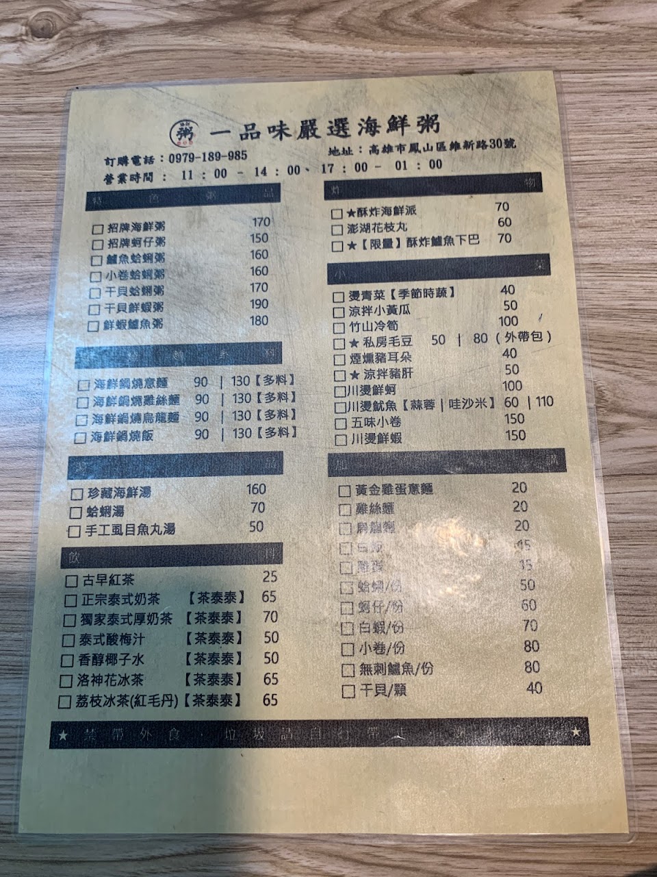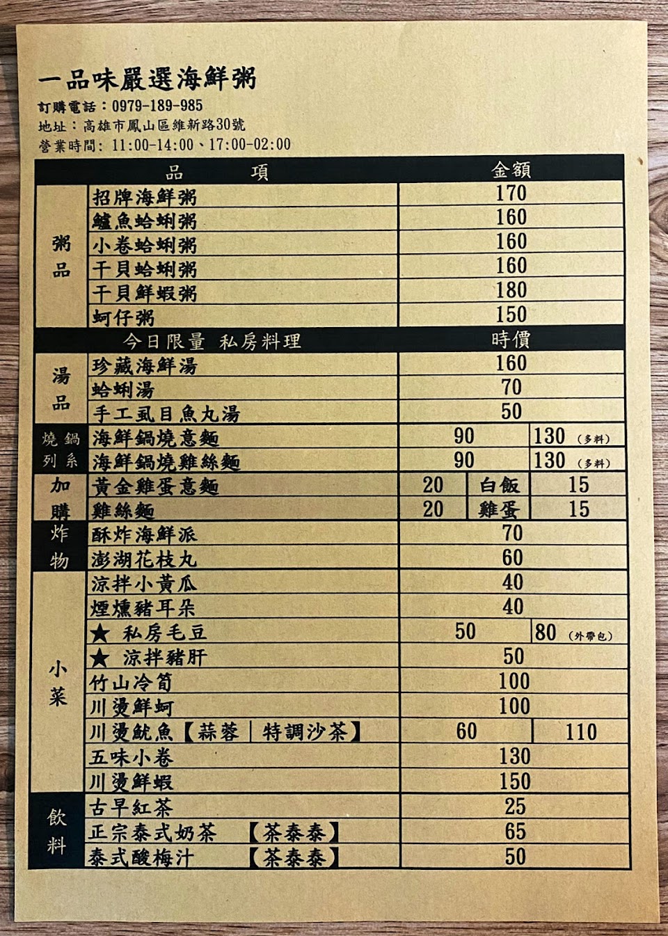 2024最新在地推薦餐廳的菜單_一品味嚴選海鮮粥的菜單、圖片