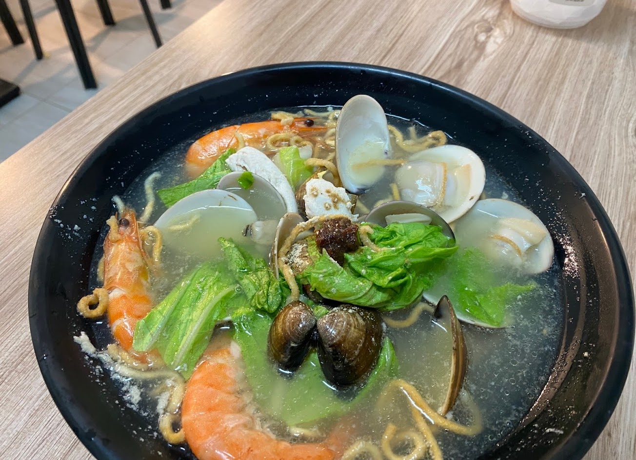 料多130就有三隻蝦加上蛤蜊 蚵仔。 又很大碗。湯頭喝的出滿滿的鮮味。非常值得來吃
