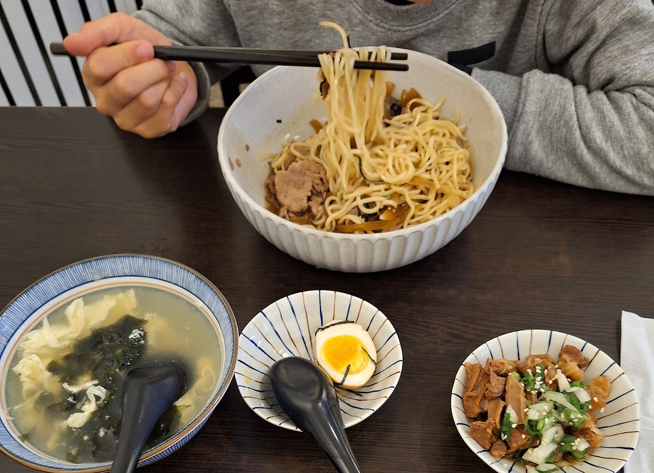 營業時間長,沒有午休時間,相較於日式醬油拉麵,烤雞腿稍微比較久一點點兒,但都算快。餐點裡面,飯、麵都有,口味也算多元,價錢也很平價。離火車站走路一分鐘就到了,很適合搭車前,在這邊吃個飽,上車睡覺。