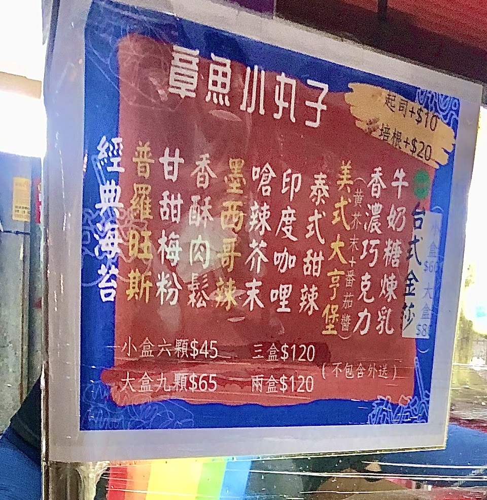 口味越來越豐富的章魚燒與鳥蛋燒,超喜歡,挑戰了巧克力口味,覺得如果有花生口味似乎更合適一點