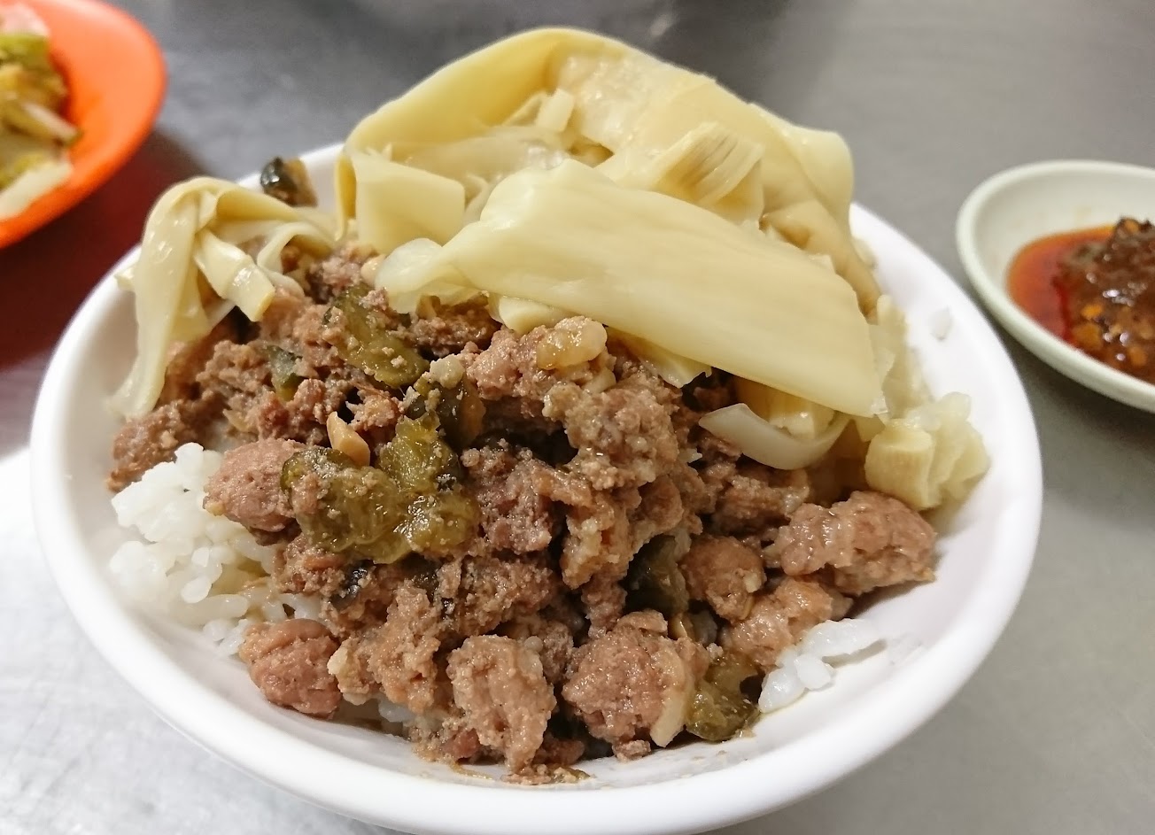 鴨肉味道不是很新鮮,裝辣油的白鐵桶子上方都發黴了,整個吃的很不安心。