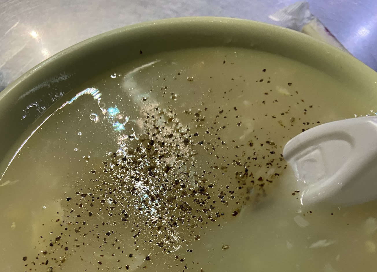 玉米濃湯味道適中,胡椒粉很多,差點嗆到~