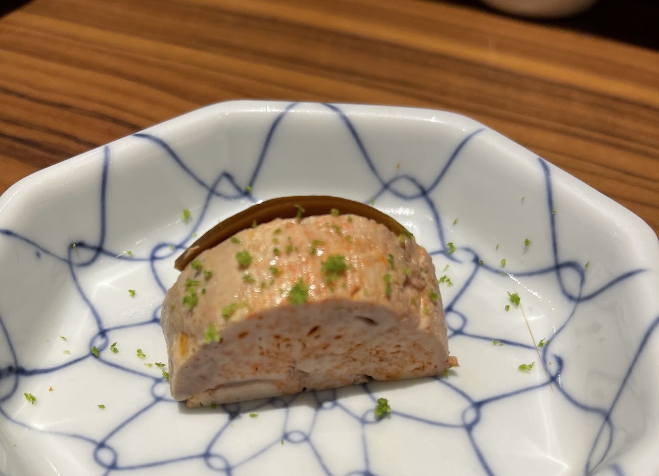 第一道開胃菜是水雲醋料理,無法形容,吃完就餓了起來,整體口味清爽,互不搶鋒頭,蠻喜歡味道夠也擁有口感的醋類,後段的枸杞讓人回到台灣的感覺,很甜味道也明顯,特別。