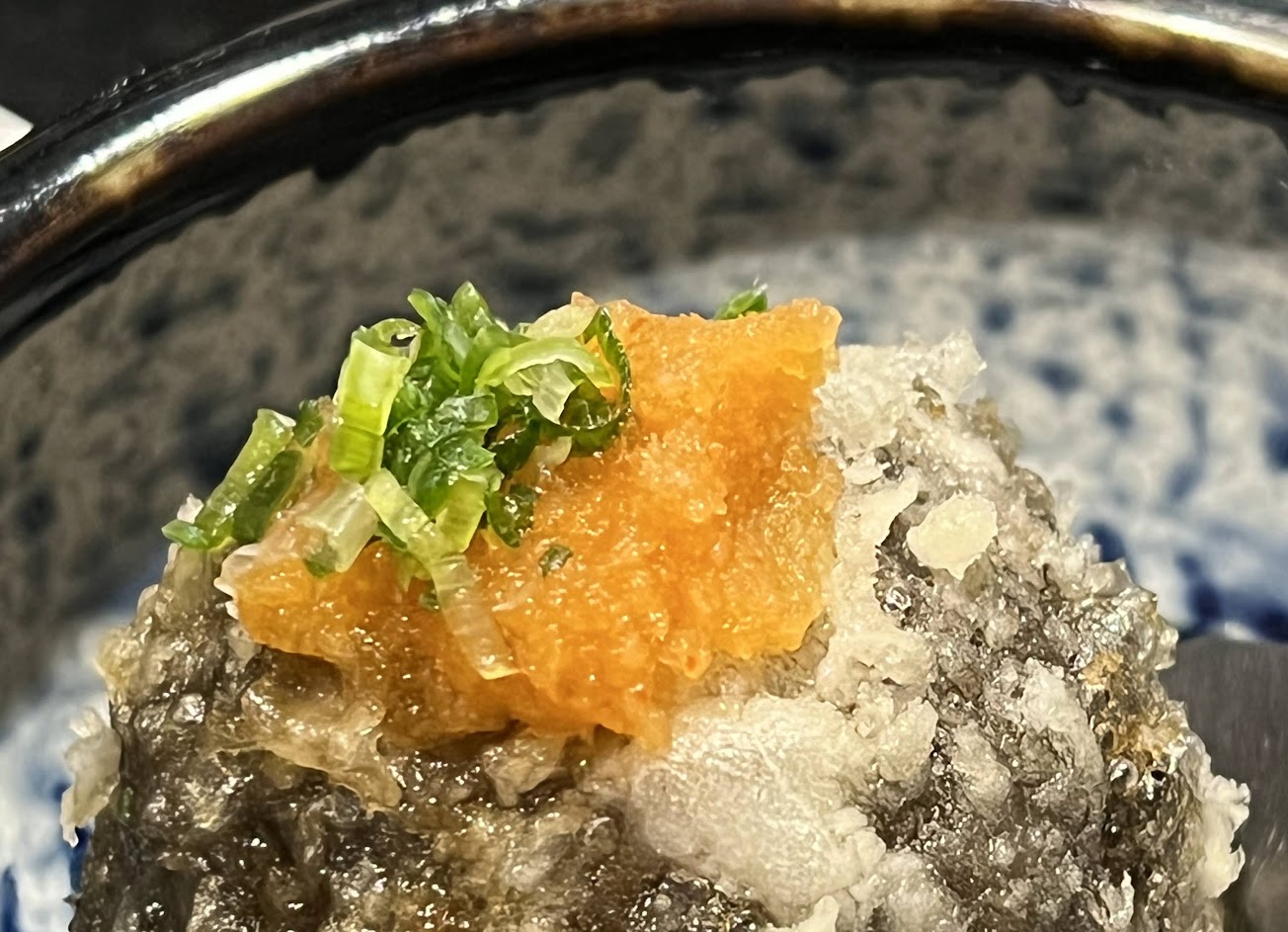 切的跟土司一樣厚的生魚片,口感就是充滿口腔的幸福! 與布丁相似的茶碗蒸,高湯與食材的自然甜味,讓看起來平凡無奇的蛋,吃起來不平凡。 每次來必點的炸豆腐,口感有如麻糬創新的吃法,真的讓我一吃難忘。 炙燒壽司?最想念的當然是干貝與比目魚,這兩種豐富的大海味道,讓不敢吃生食的人都願意親口嘗試。 最後別忘了也是必點的烤山藥,有別於一般薄片燒烤,厚片加上特調的美乃滋,入口即能嚐到山藥的炭烤香氣! 真是讓人能一來再來的日本料理店
