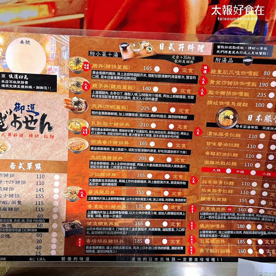 餐點Good,惟停車不便。 服務 內用 餐點類型 晚餐 平均每人消費金額 $200-400 特殊餐點 日式丼飯料理,尤以豬排是重中之重,吃得出來老闆的用心。