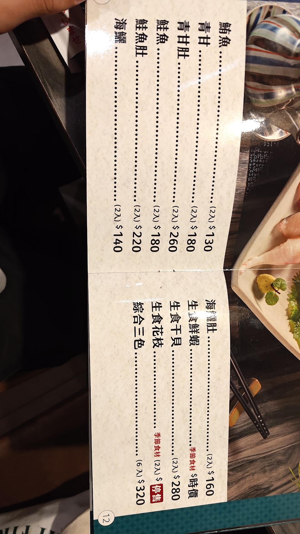 最大的問題就是服務的部分,但餐的人員感覺有點像是領班,態度真的是….不能說差,但很沒有禮貌,很像無理大媽==,點一個菜催催催的,也不會介紹菜,我說要握壽司,他幫我點成炙燒的,膽餐的態度好像是我欠你一樣,真的難以理解,後面收盤子更扯,直接對我說:那個盤子拿給我….,前面收桌的阿姨都知道要先說”這邊幫你收桌喔”、”麻煩”、”請”、”謝謝”掛在嘴邊,同時也懂得微笑,今天你們客滿就算了,店裡沒幾桌生意還可以這樣….只能說活該生意不好,要不是家中長輩說都訂位了,我原本是想直接走人的。