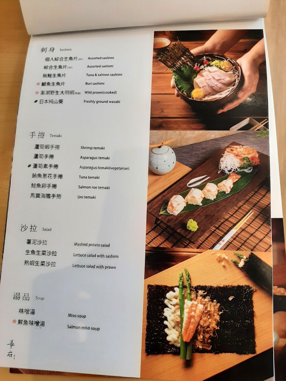 炙燒鮭魚, 沙拉啦, 鮮蝦蘆筍手捲