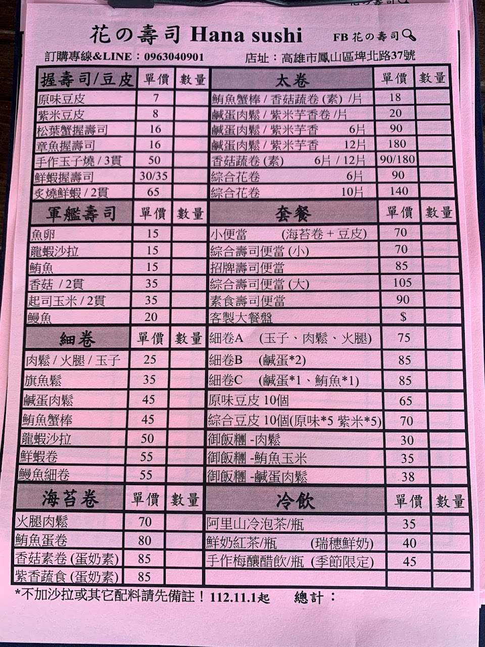 2024最新在地推薦餐廳的菜單_花の壽司 Hana sushi的菜單、圖片