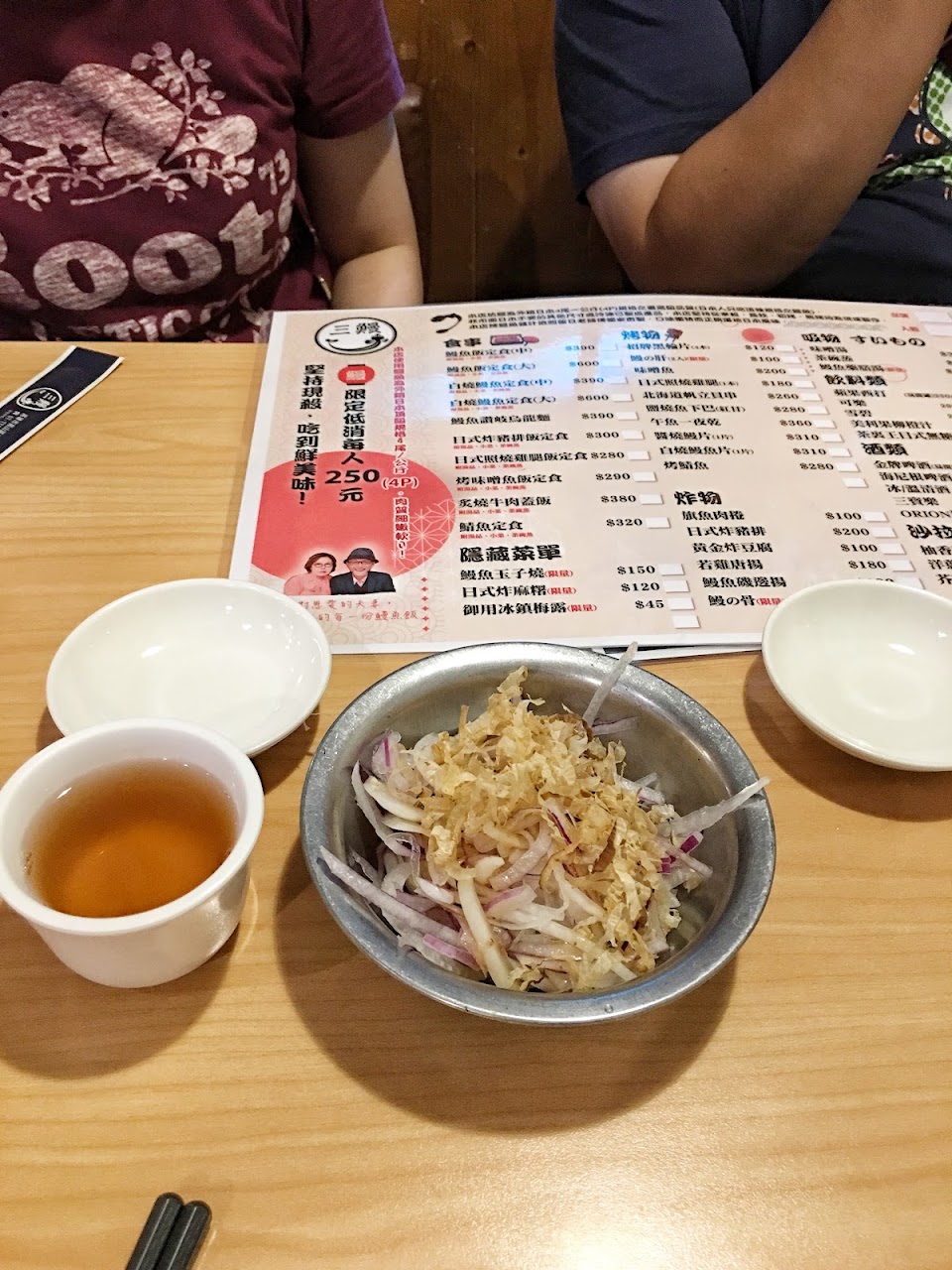 三顆星是給老闆娘的,老闆娘很親切,會注意客人桌上菜來了沒,還會贈涼拌洋蔥當招待。餐點部分鰻魚飯還不錯,說不上道地,只能說好吃。服務生不親切、不主動