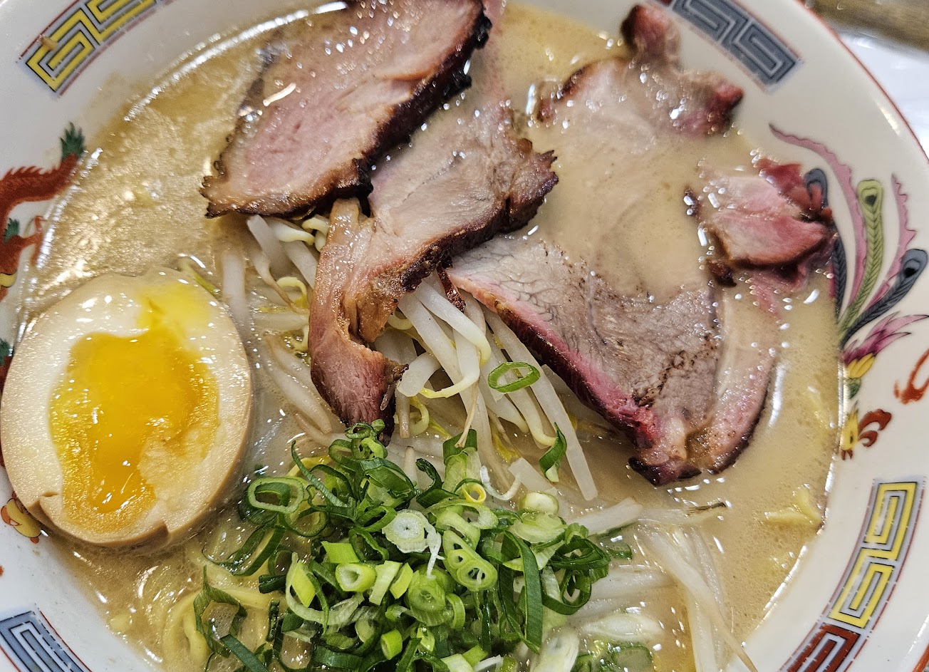 吃了叉燒濃厚醬油,日式湯頭,叉燒量充足,點餐時可要求加蔥蒜。