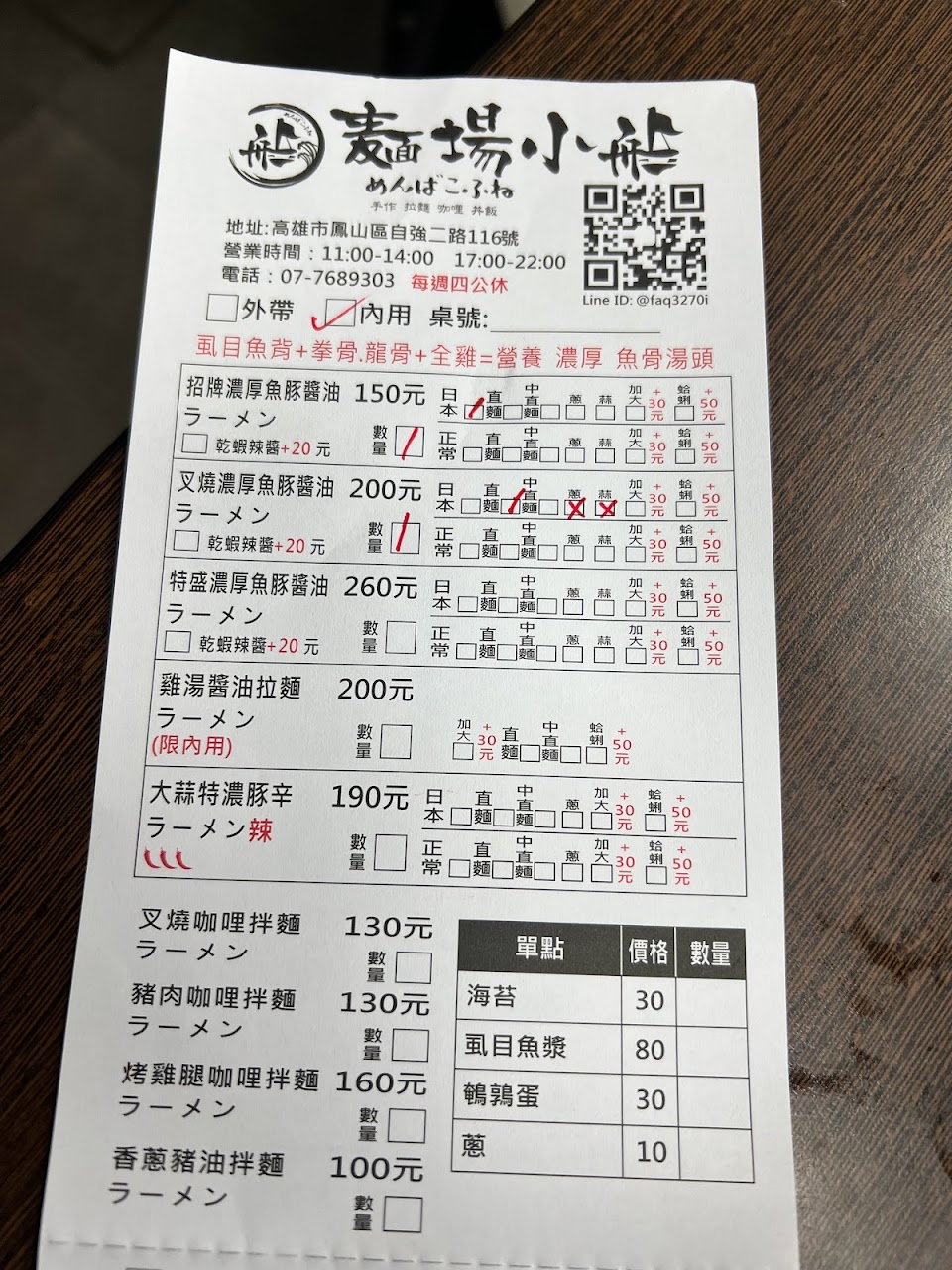 日式料理 「麵場小船」位在鳳山自強夜市裡的美食.