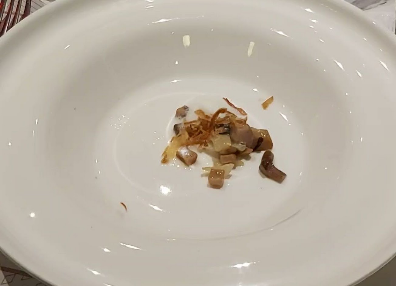 還有主餐吃完接甜點,送甜點的男員工,不知道是不是沒看到一大盤的主餐盤放在桌面還是怎樣,如果是覺得有剩的洋蔥,你好歹也問一下餐盤還需要嗎?甜點就放在主餐盤旁 明顯已經擠在一起,明明手上也沒有其他桌的甜點要送也不問也不收一下,這次用餐真的蠻雷的。