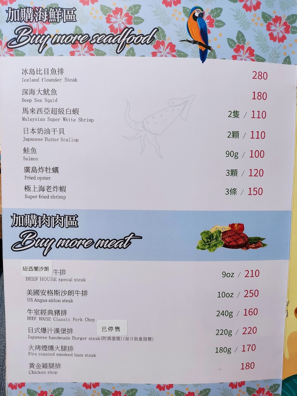 東西這種價位還可以,東西蠻多樣的,牛排就要再加強,一塊牛排有的部分根本都還像沒煎到一樣,有點誇張。
