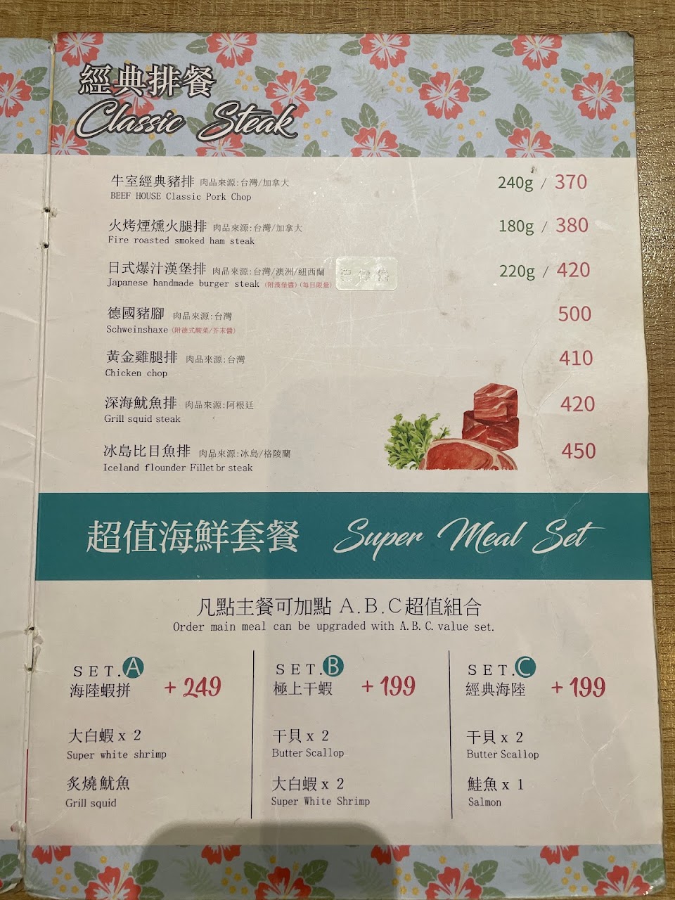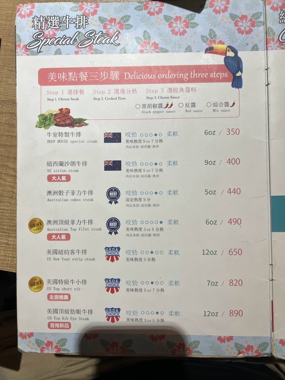 2024最新在地推薦餐廳的菜單_牛室炙燒牛排BEEFHOUSE 高雄鳳山店的菜單、圖片
