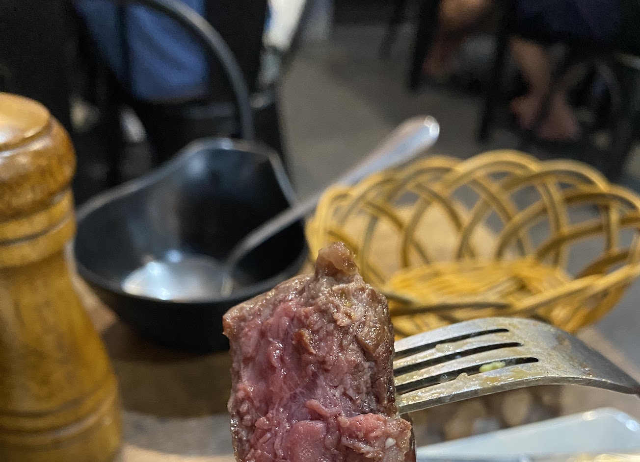 肉質鮮美,為數不多的平價牛排店,牛排咬下去是“牛肉肉汁”的味道,而不是“醃漬醬料“的味道。是原味肉塊,所以放點鹽不需醬汁可品嘗原味牛肉的味道,值得推薦。