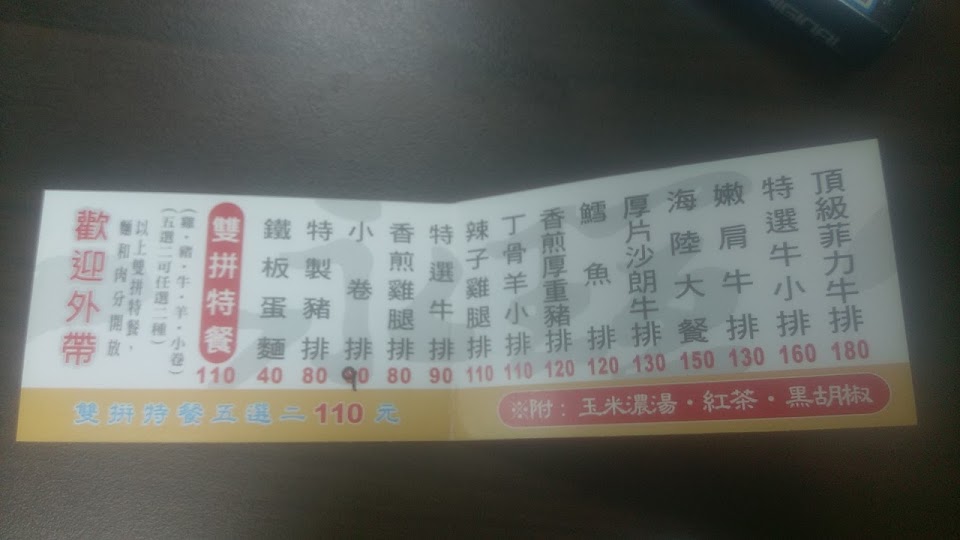 記得剛搬來鳳山時來品嚐份量大又多;今天再次光臨品嚐真的有點失望;或許因物資都上漲而調漲價錢這能接受(算是平價店);但是份量少送來的鐵板麵也沒有很熱微溫,點得厚豬小塊到有點傻眼;而海陸的豬肉硬又柴到牛排刀切不斷(需要一點時間);所以希望店家能忙而兼顧到原有的品質有機會再光臨食餐點能改善;並祝店家生意興隆財源滾滾