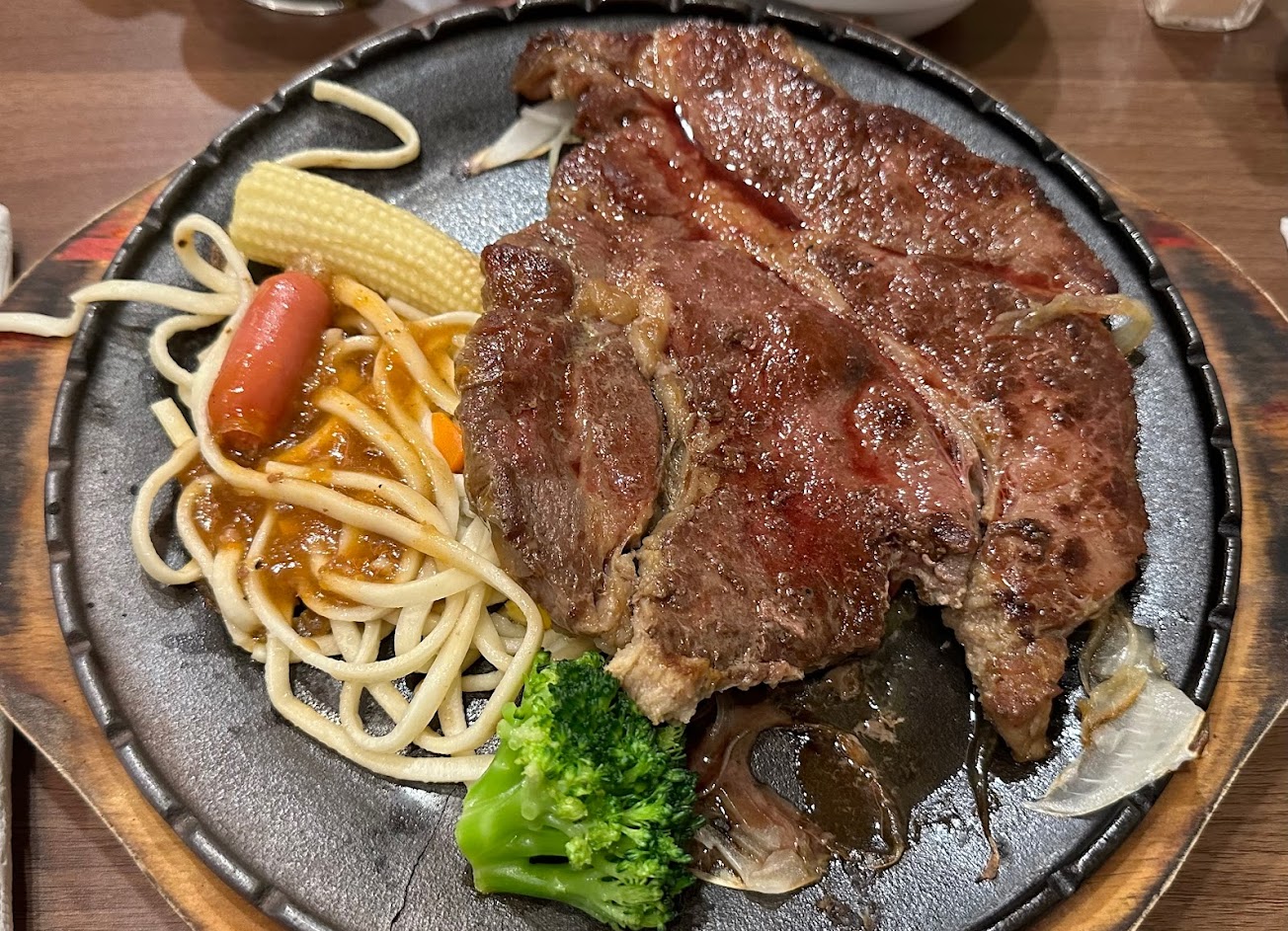 睽違了十五年再去用餐,牛排的品質變好了,也很大塊,也厚,重點是肉質鮮甜,又好吃,真的是屹立不搖的老店,顧客也多,下次去就要來吃三公斤的超大牛排,嘿嘿嘿。 服務 內用 餐點類型 晚餐 平均每人消費金額 $200-400 餐點:4 服務:4 氣氛:4 建議的餐點 水果沙拉吧, 巨無霸牛排, 羅宋湯 酥皮濃湯 素食餐點 牛排店還有素食,真的是佛心