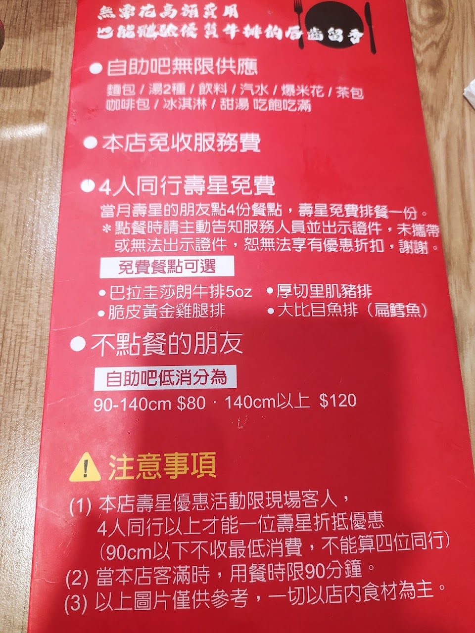 須注意:用餐時間90分鐘。