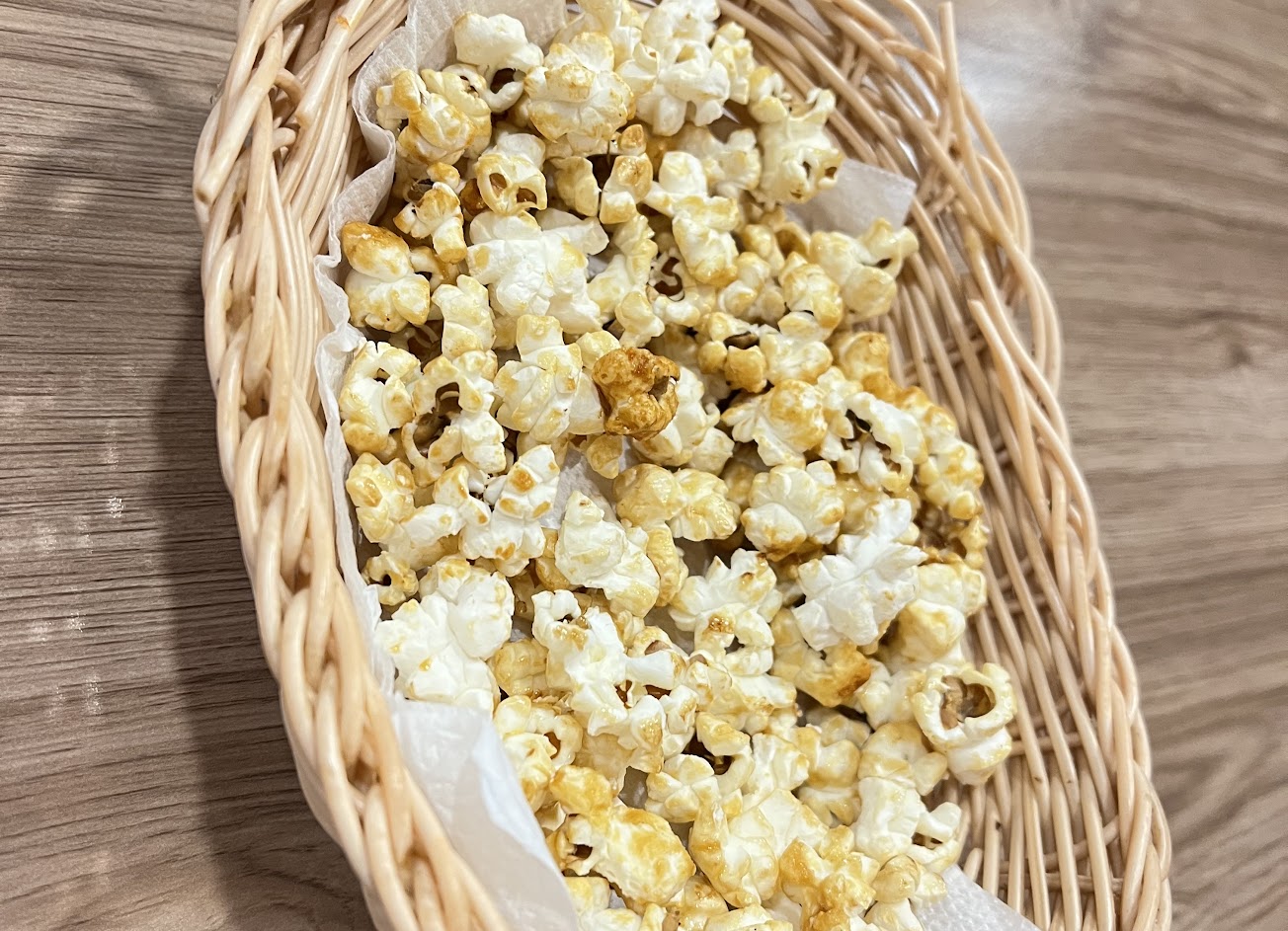 爆米花是軟的、烤麵包的巧克力跟花生醬有油耗味