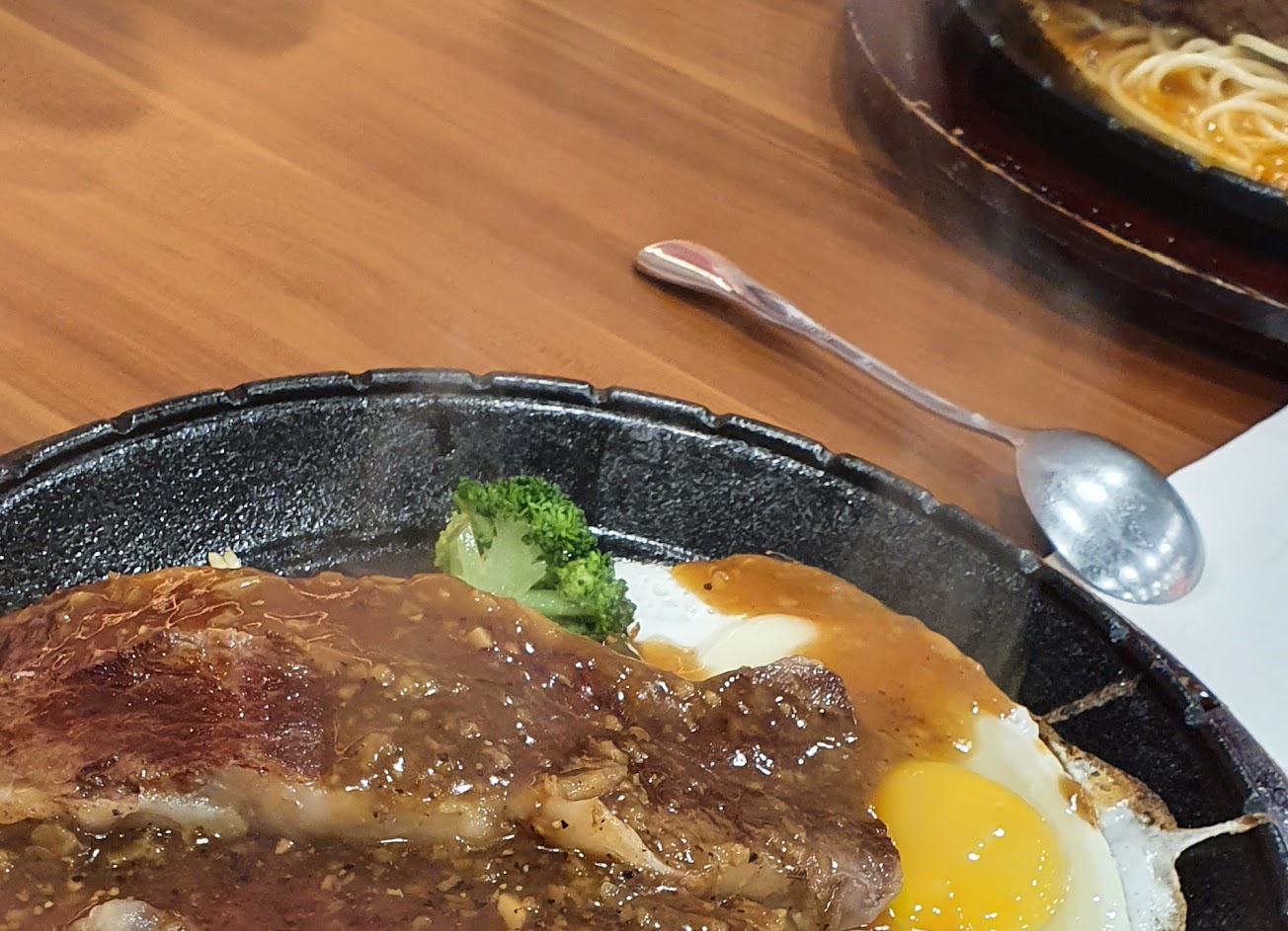 口味一般!只勝在份量大! 蛋品質不佳、玉米濃湯粉味太濃(極差) 牛肉(頂級莎朗)肉質不佳!口感差! 雞腿鐵板與碳燒、口感相似、皆醃製過、味道濃厚!口感佳