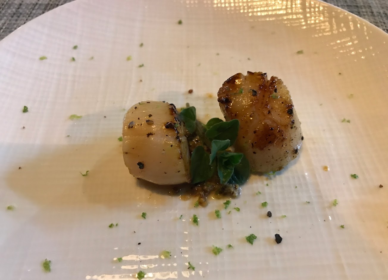 2. 前菜:檸香干貝佐焦糖蘋果泥