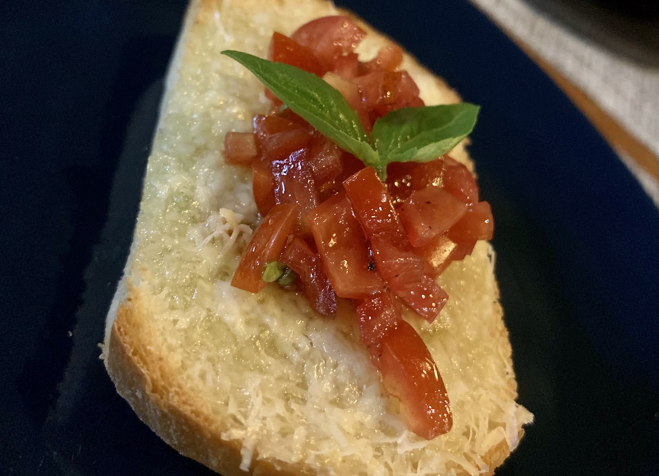 1. 開胃菜:番茄羊乳酪佐甜羅勒烤麵包