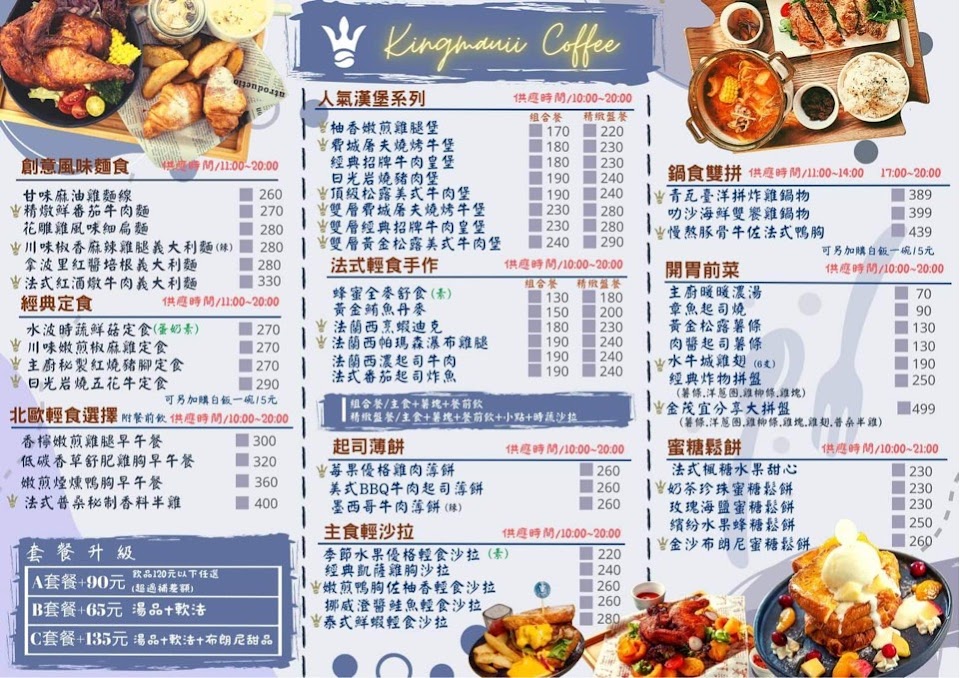 2024最新在地推薦餐廳的菜單_Kingmauii Coffee 金茂宜咖啡 文濱店 – 高雄鳳山推薦咖啡廳 熱門下午茶 早午餐 商業午餐 義大利麵 親子餐廳 必吃甜點餐廳推薦定食 場地租借首選 求婚包場 PTT好評 打卡 燉飯 手沖咖啡 聚會聚餐 情侶約會的菜單、圖片
