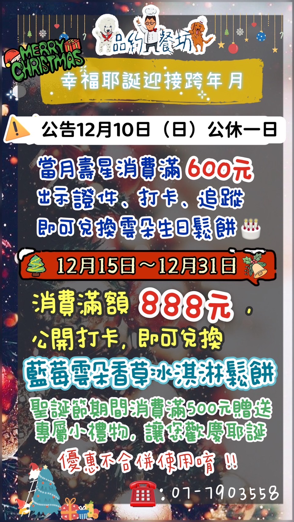 來到鳳山來旅遊,品約剛好在旅店旁邊不遠處,初來到訪就被老闆熱情的招呼燒到,餐點也很好吃又真材實料,價格又不貴,給這趟旅程添加歡樂與溫馨,老闆還送上了兩個可愛的小香包,真的真的太可愛了!好喜歡這裡,有機會一定會再來訪。 餐點:5 服務:5 氣氛:5