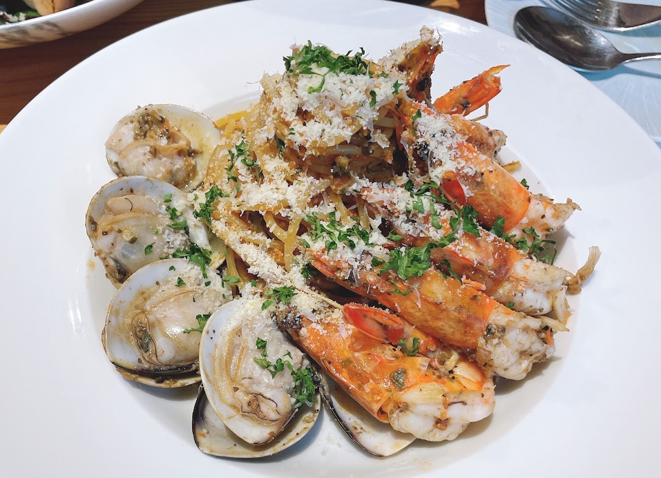 好喜歡這間店的氛圍,是間親子友善餐廳,服務人員超親切。這次點了蒜香清炒的白蝦義大利麵,麵條Q彈,香味非常濃郁。海鹽冬瓜氣泡飲真推,不喜歡氣泡飲的小朋友也愛不釋手。
