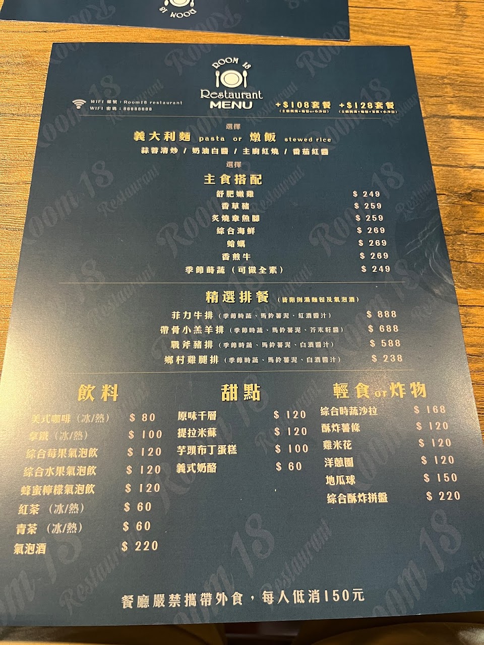 •套餐(沙拉、麵包、湯、飲料) ??128