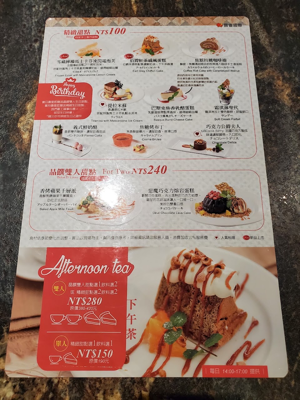 這次吃碰到了一個問題,前菜、經典料理、湯品都吃完了之後,本該上菜的主餐卻因為店內圓麵供應完了,必須花時間重新烹飪,導致需要等待較長時間,到這邊還能接受,畢竟員工有自己來提醒。但等了一段時間之後,主餐都還沒等到甜點就端上來了,有提醒工作人員主餐還沒上來,先麻煩他們不要上甜點,在這之後員工有再來一次提醒需要等待一下子,就這樣前前後後等了大概半小時跑不掉,中間空檔很尷尬,希望能注意一下這點。