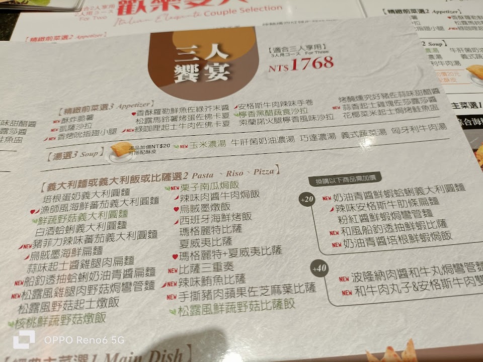 服務態度佳 餐點好吃 服務 內用 餐點類型 午餐 平均每人消費金額 $400-600 餐點:5 服務:5 氣氛:5 建議的餐點 雙人 套餐, 烤醃燻究好豬佐義式香草油 停車位 很多停車位 附近的停車場 免費停車場 停車場 不確定