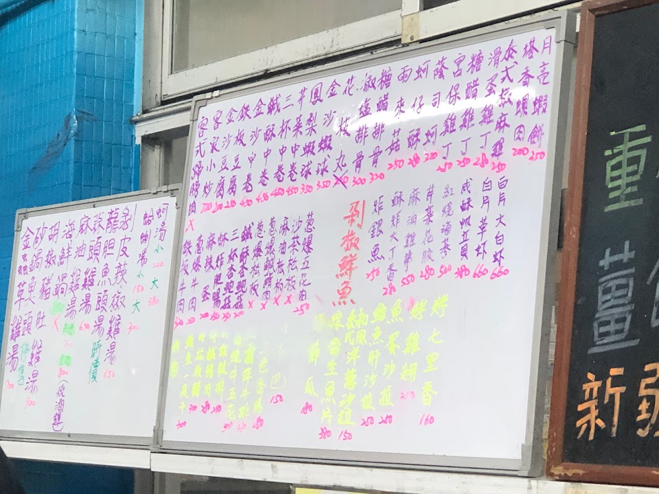 重慶烤魚, 鹽烤蝦, 蒜味焗烤蝦, 鳳螺, 糖醋雞, 水蓮, 麻辣海陸總匯, 烤牛肉, 月亮蝦餅, 烤味增魚