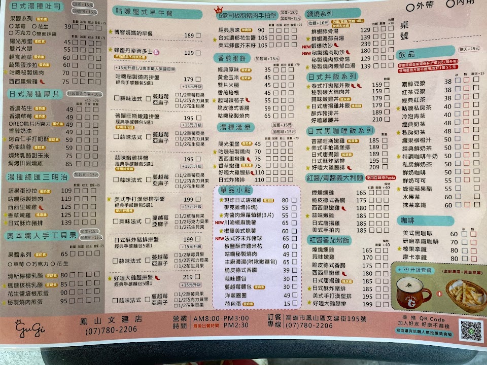 2024最新在地推薦餐廳的菜單_咕嘰咕嘰早午餐_高雄鳳山文建店的菜單、圖片
