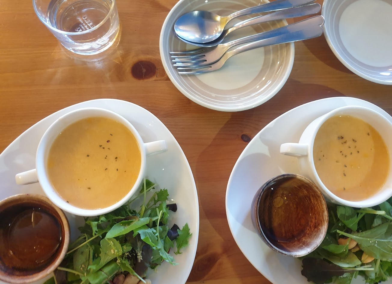 我們這天點了雙人套餐 #生菜沙拉+鮮蝦湯:野菜很特別。