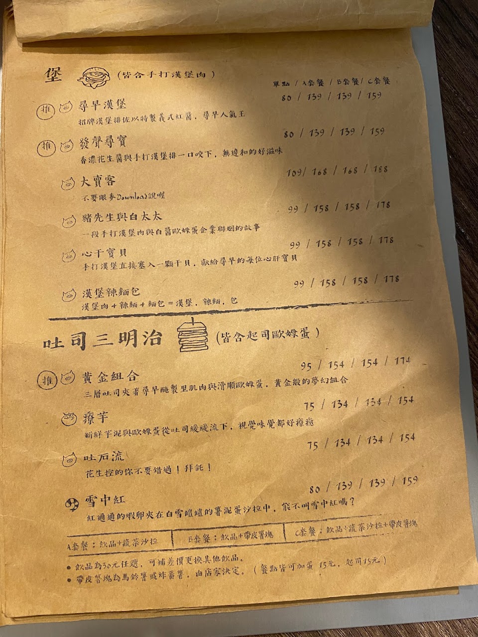 可能太晚去啦~本來想說要喝少奶奶(鮮奶茶)結果紅茶沒有了? 不過老闆娘(應該是)後來端一杯不夠量的紅茶招待啦(可能我的意思被他誤解我真的很愛喝紅茶哈哈?) ➡️餐點的部分特寫一下我真的很愛地瓜啦 剛好今天就是地瓜? ➡️飲料:香蕉芝麻鮮奶 覺得芝麻味好香~(個人不愛香蕉所以是男友要喝的啦? ➡️整體餐點還蠻喜歡的 我的餐點是黃金組合三明治 圖片而知 是大吐司呦 量對我來說有點多(幸好可以打包)❤️ 另一個餐點:發聲尋寶 是搭配花生醬 我忘記藏一口了~男友覺得還可以☺️ 一定會再訪☺️⋯⋯加油? ➕建議:可以來個鍋燒類 去之前已經提醒男友是早午餐唷!他說應該會有鍋燒吧~結果哈哈哈?