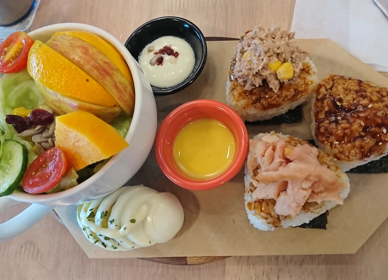 裝潢好看,服務可以,餐點……還是去濰克好… 千萬不要點日式三兄弟飯糰跟日式炒杯麵…? 飯糰一點都不日式… 口感根本電鍋飯拿出來捏形沒煎…醬也不是日式的…飯糰上面的料是罐頭鮪魚還冰冰的…還有擺燻雞肉…總之根本不日式……?