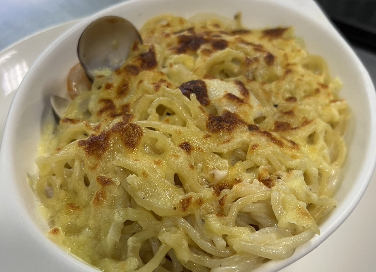 肉醬義大利麵?、奶油海鮮義大利麵、蛤蜊湯、奶油海鮮焗烤義大利麵
