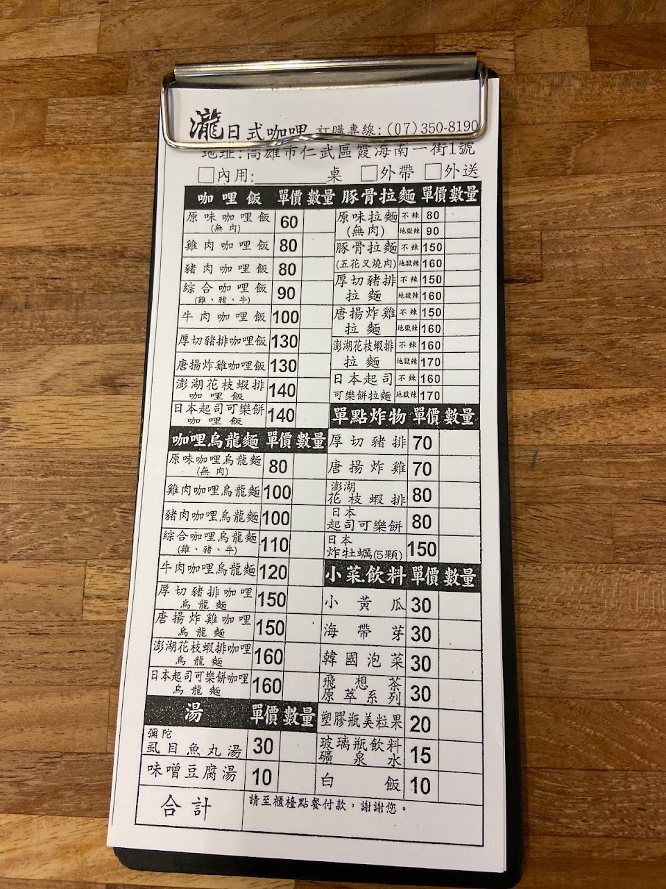 2024最新在地推薦餐廳的菜單_瀧日式咖哩的菜單、圖片
