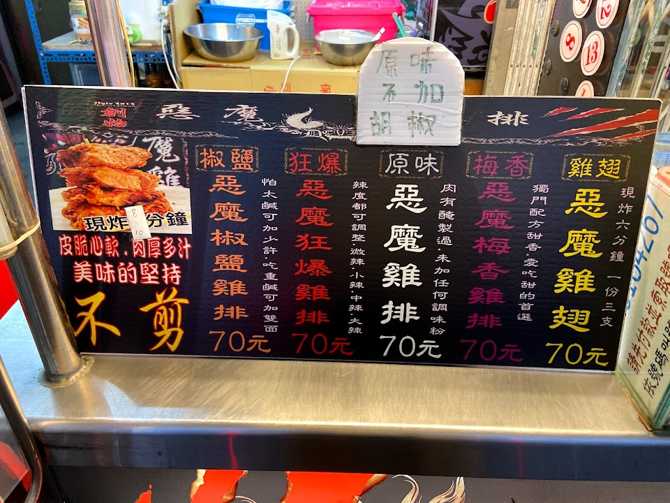 原本是惡魔雞排,後來改名了,不過還是一樣好吃,雞排很大一塊,肉很厚,咬起來很多汁,外皮炸的也很酥脆,米血炸外酥內軟的很好吃,不會太乾或太硬,搭配隔壁的飲料攤還有折價,愛吃雞排的朋友,可以參考看看。