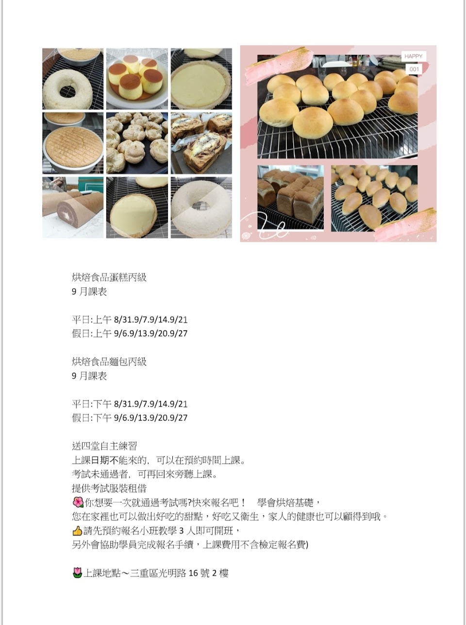學費親民,老師nice,謝謝老師通過烘焙麵包丙考試了