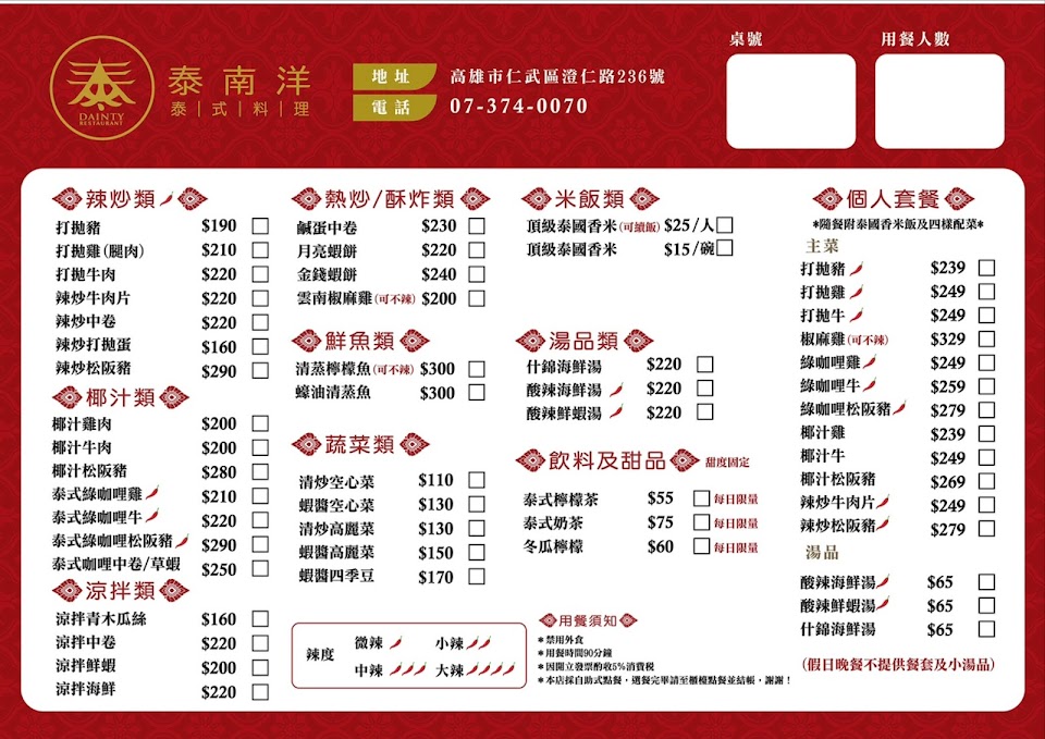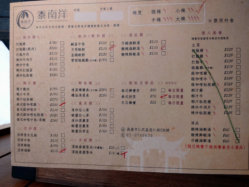 2024最新在地推薦餐廳的菜單_泰南洋的菜單、圖片