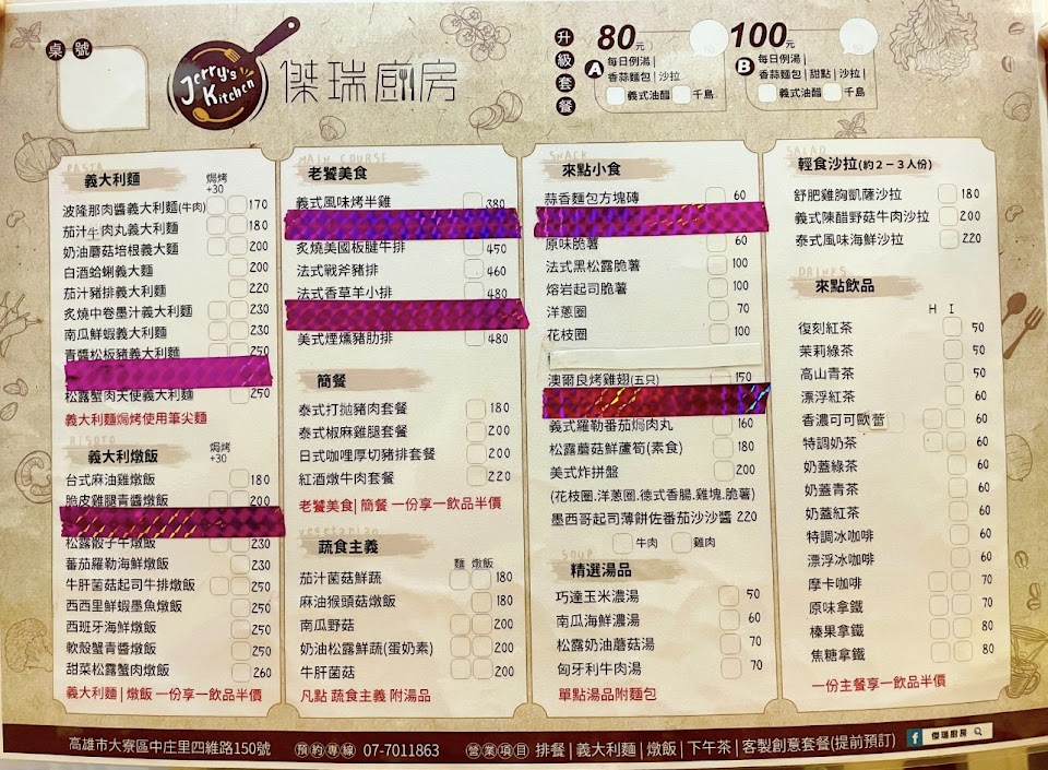 傑瑞廚房Jerry’s kitchen—義大利麵\燉飯\咖喱飯\焗烤\特色料理