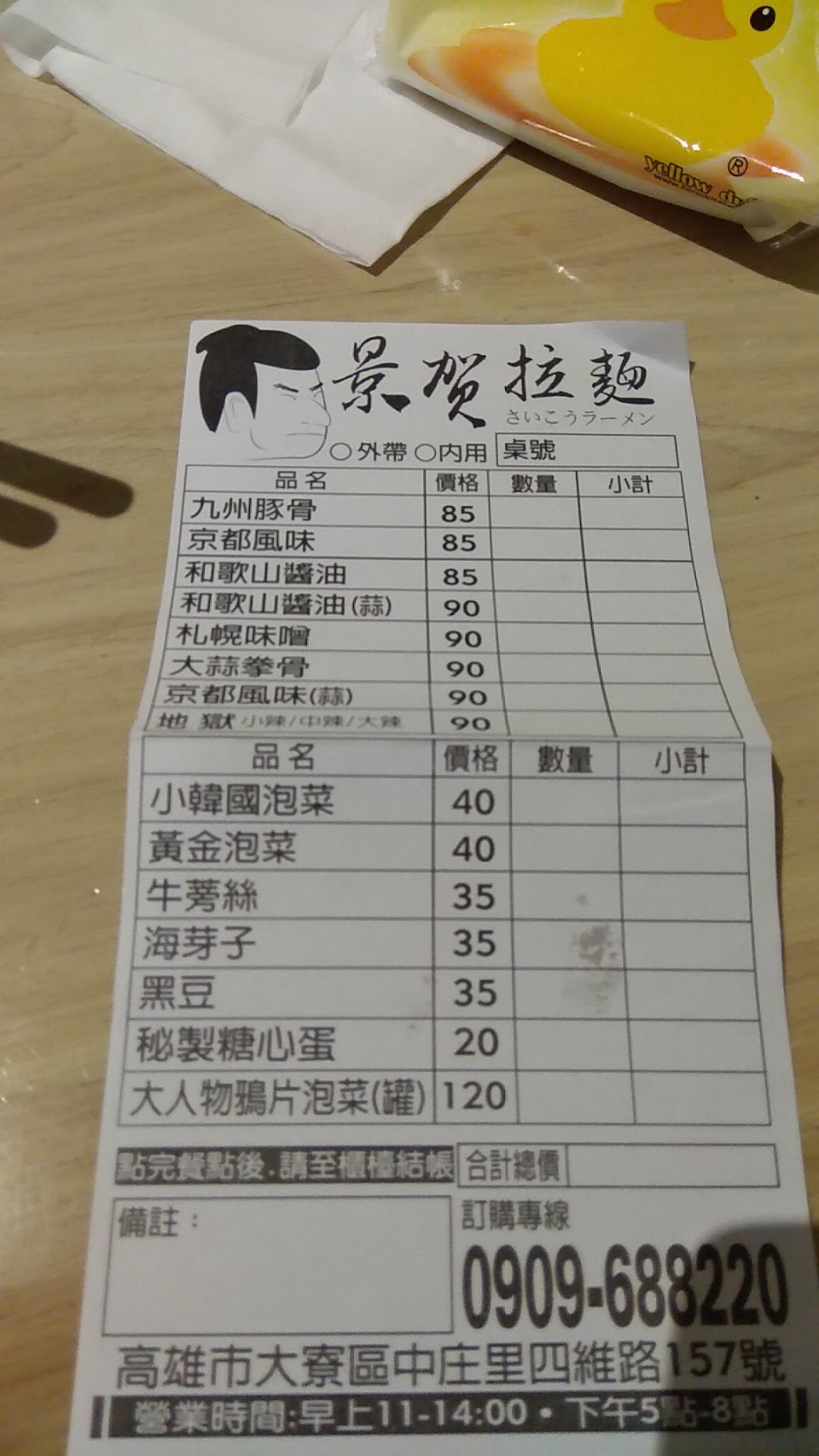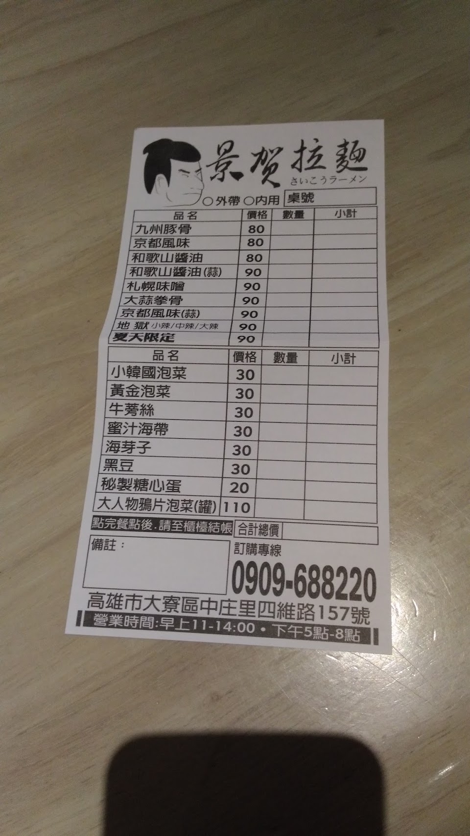 大寮中莊後莊地區 算很好的拉麵店. 年輕人很愛 豚骨拉麵