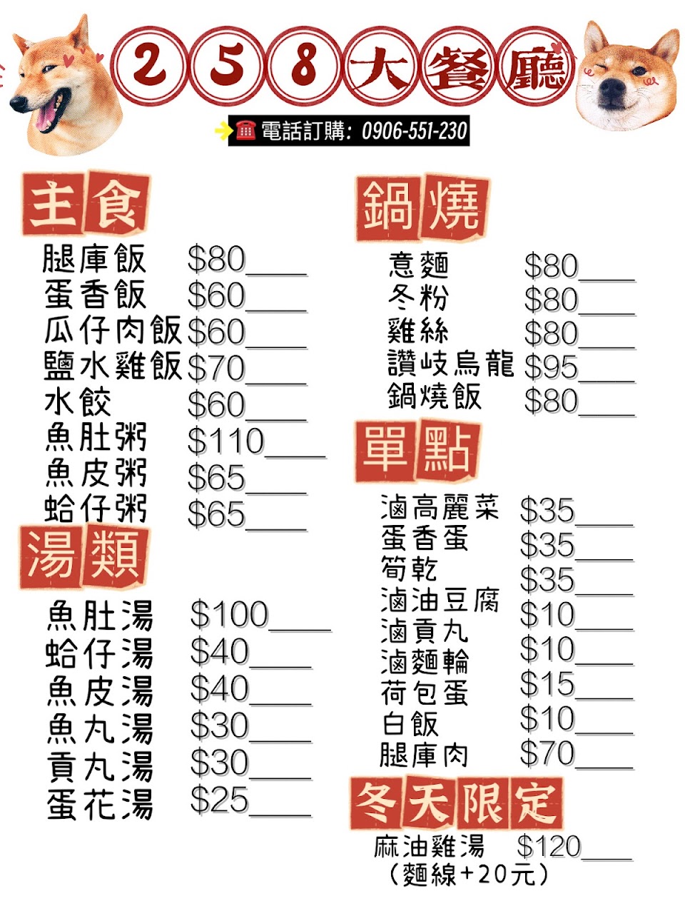 2024最新在地推薦餐廳的菜單_258大餐廳的菜單、圖片