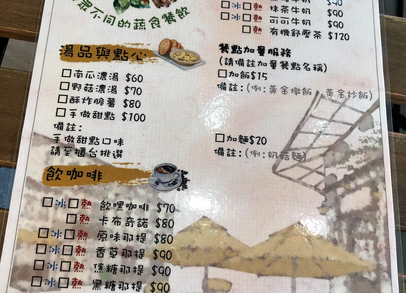 老闆與闆娘很用心經營的素食餐廳,打破蔬食餐點的印象,清炒時蔬義大利麵清爽可口,食材也很新鮮,環境也很好,可以悠閒度過一個下午,咖啡也意外的很好喝,值得二訪的店家。