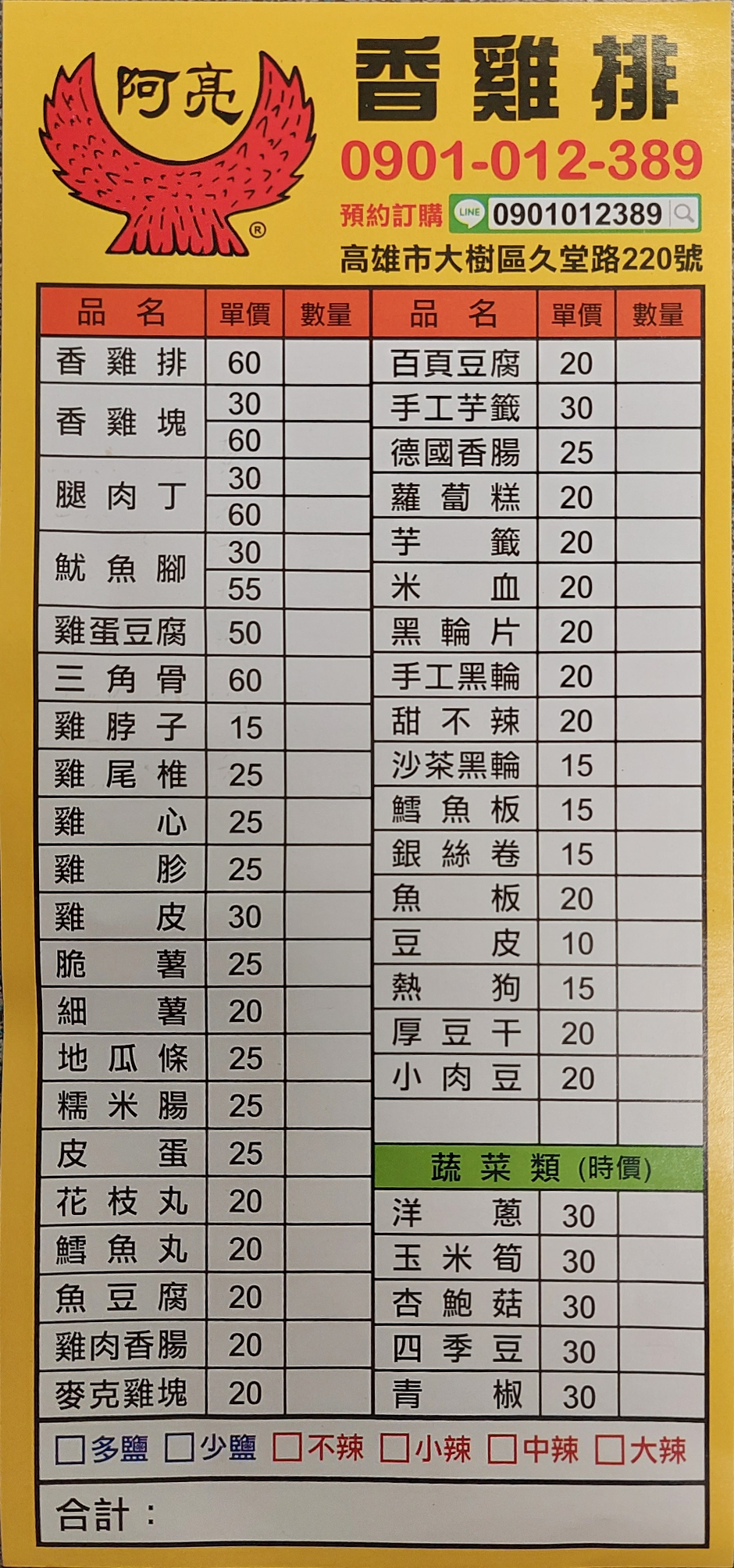2024最新在地推薦餐廳的菜單_阿亮雞排的菜單、圖片